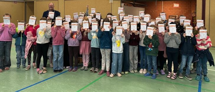 Unsere sportlichen Mädchen vom dritten und vierten Schuljahr haben am 5. November an den Kreismeisterschaften für Grundschulen im Fußball teilgenommen. Unterstützt und trainiert wurden sie von Herrn Obrok. Sie erzielten den 4. Platz für unsere Schule. Herzlichen Glückwunsch zu dieser Leistung!